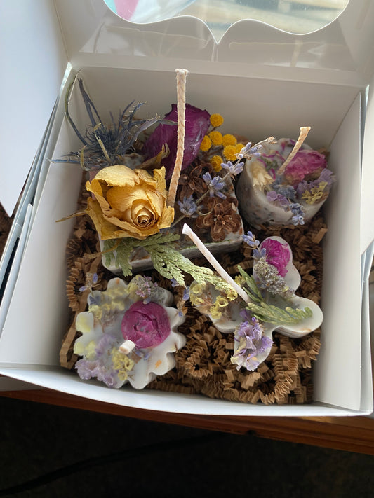 Hand poured, clean burning candles are our first and most favorite creation. Personally selected vintage and one of a kind glass, ceramic, and wood vessels are yours to treasure and reuse (or refill!) after your candle is burned. Each candle is uniquely decorated with crystals and other bits of nature. We only use all natural, non-toxic ingredients, therapeutic grade essential oils, and source as local and organic as possible.