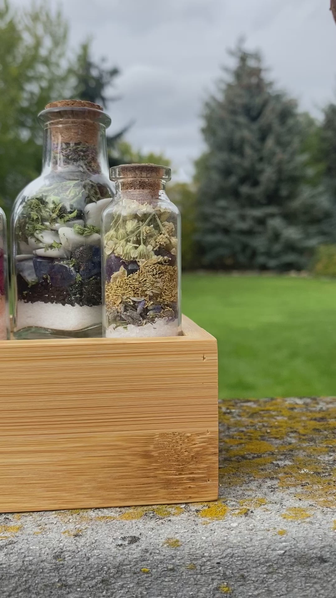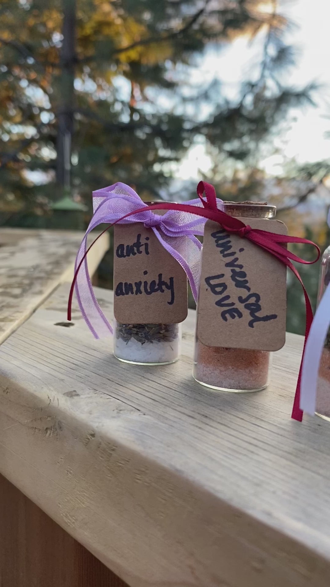 Small anti anxiety spell jar in glass bottle with cork closure. Place on your altar, entryway, nightstand, desk, in your car or anywhere you’ll see it regularly to remind you to take a deep breath and let go.